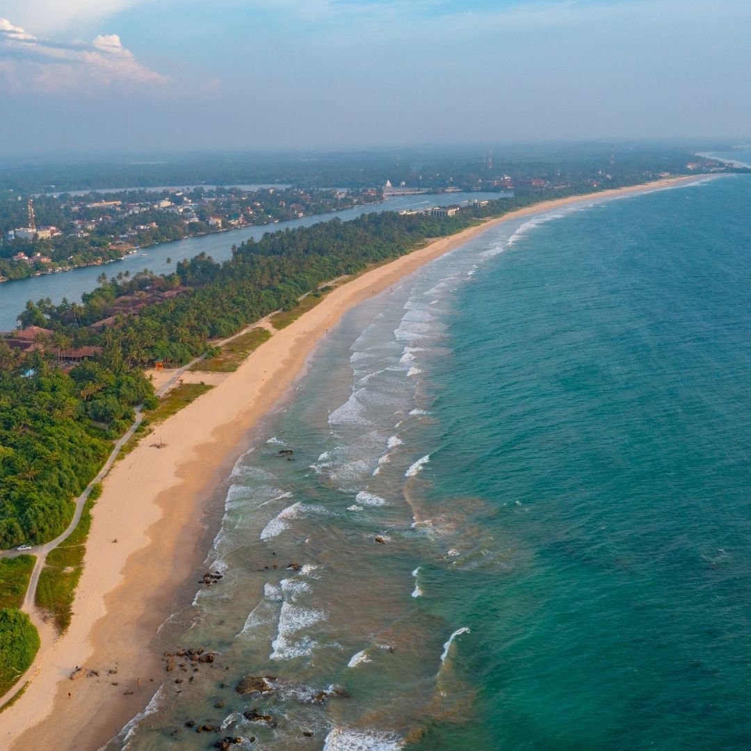 The long Bentota beach stretches north, where it becomes a strip of golden sand called Paradise Island, parallel to the Bentota lagoon. It is surrounded by bushes and palm trees. The sand is brilliant white on this extensive beach, and the sea is a brilliant aquamarine due to its light-colored sandy bottom. It is a vast expanse of sand perfect for swimming, sunbathing, and long walks. Its calm waters are also excellent for water sports such as water skiing, windsurfing, and banana boat rides. A beautiful beach ideal for relaxing and enjoying water sports.