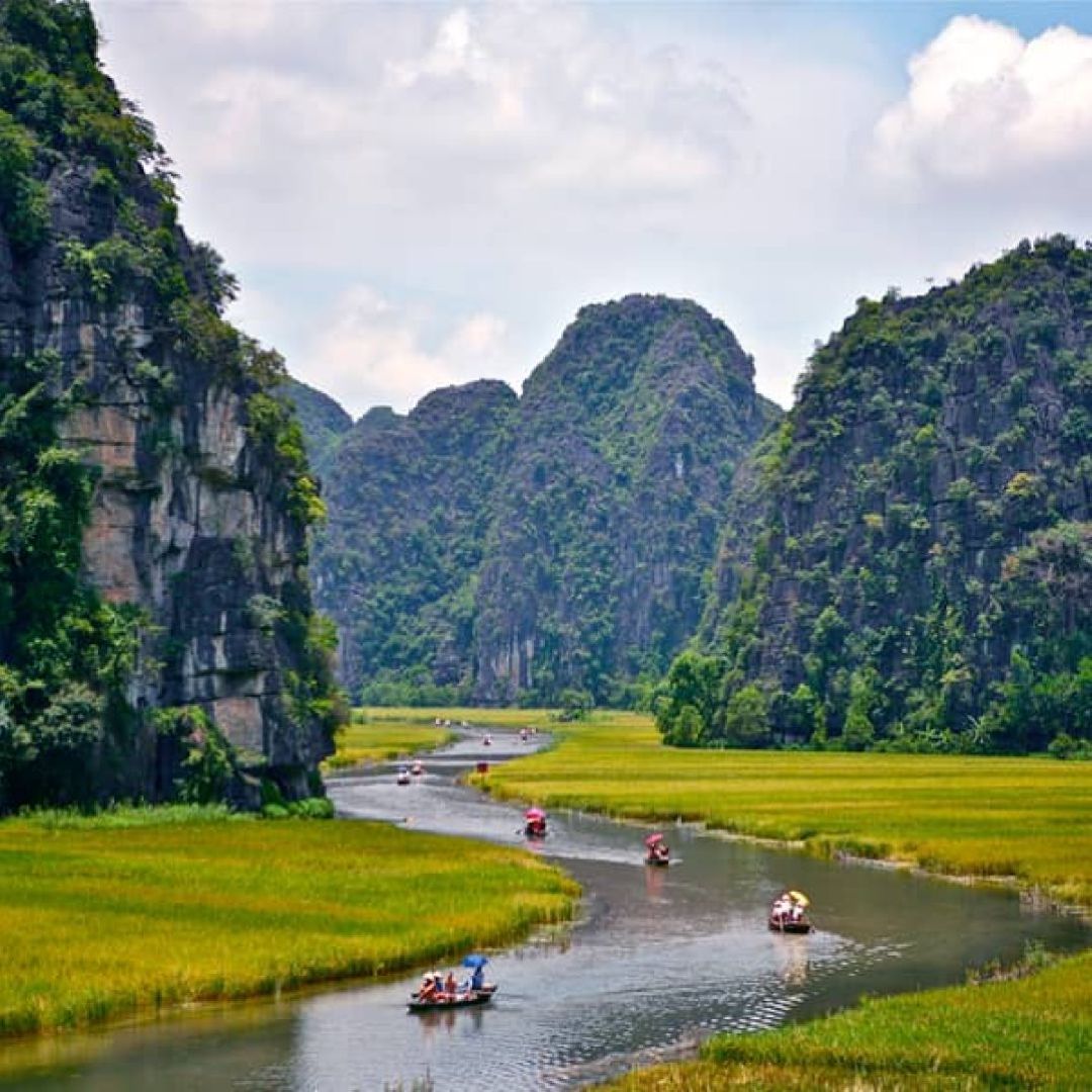 Early breakfast at the hotel. At 8:00 AM, departure for Ninh Binh province. Upon arrival, we'll take a traditional boat trip in Tam Coc, enjoying the beautiful landscapes of rice paddies and the famous three caves: Hang Ca, Hang Hai, and Hang Ba. We'll witness a perfect blend of nature and human intervention, mountains and river, Yin and Yang. Lunch at a local restaurant. Afterward, we'll cycle along scenic country lanes to Bich Dong Pagoda, a complex of three pagodas perched on a limestone mountainside, offering stunning views of rice paddies and valleys. Transfer to the hotel and overnight stay.