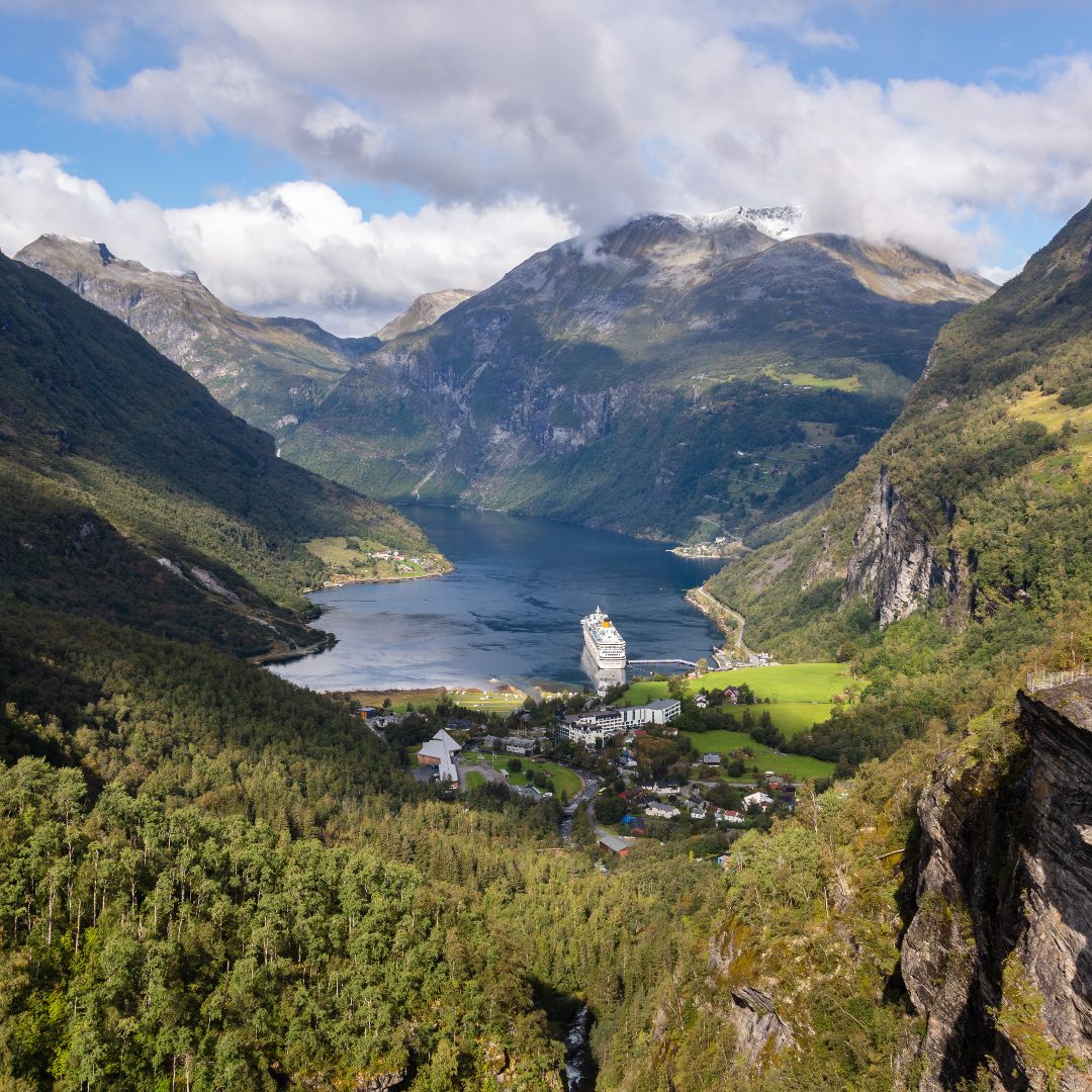 Breakfast at the hotel. Day trip through central Norway to Åndalsnes, passing through the charming village of Dombås and enjoying spectacular views of valleys, forests, and mountains. Stop for lunch in Åndalsnes (not included) and continue along the iconic Trollstigen road, one of the most breathtaking mountain passes in the country, with its dizzying curves, waterfalls, and panoramic viewpoints. Arrival in the picturesque village of Geiranger, located on the shores of the famous Geirangerfjord. Check-in at the hotel, dinner, and overnight stay.