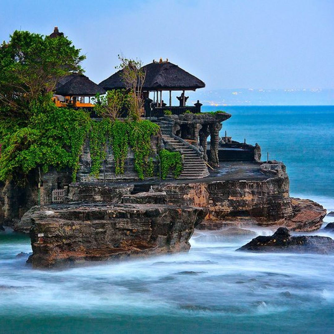 Breakfast. At 8:00, departure for the sacred forest of Sangeh, inhabited by several tribes of monkeys that protect the temple from evil spirits. Next, we will arrive at the Royal Temple of Taman Ayun in Mengwi, built in 1634 by the King of Mengwi. It is a beautiful temple with a multi-tiered roof and Balinese architecture. It has a large landscaped garden in the front courtyard to welcome all visitors. Afterward, we will transfer to our next destination, the famous Tanah Lot temple, a magical structure that stands alone on a rock, right in the sea. After the visit, transfer to your hotel on the beaches of South Bali.