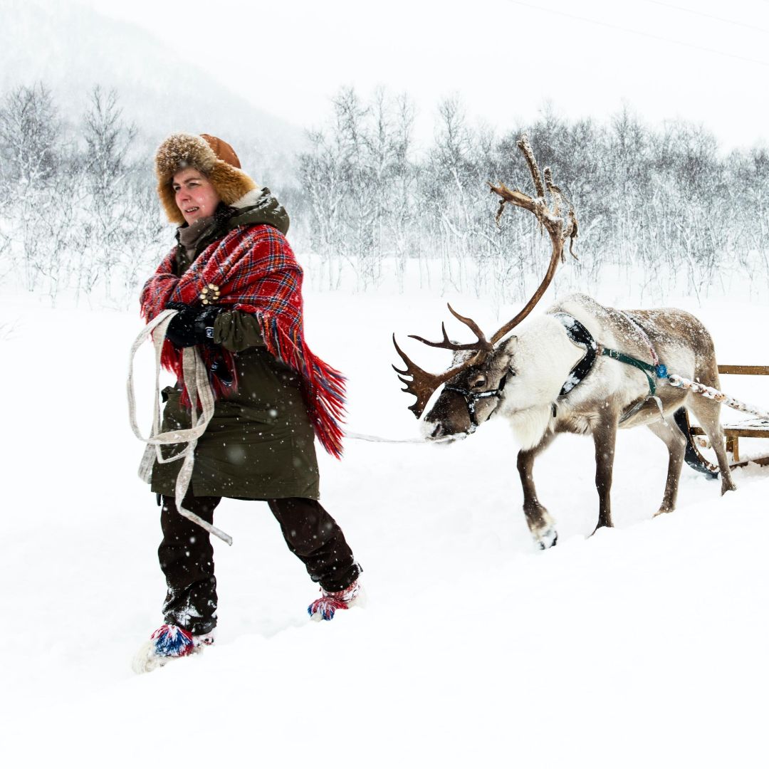 Desayuno en el hotel. Opcionalmente podrás realizar un safari en motonieve por la meseta de Finnmarksvidda (ver opcionales). Almuerzo libre. Por la tarde, nos adentraremos en la cultura sami con una experiencia auténtica: > Paseo en trineo tirado por renos: En plena naturaleza ártica, nos subiremos a trineos tirados por renos, el tradicional med io de transporte sami. En silencio, recorreremos el bosque nevado, donde quizás podamos avistar un alce noruego, el “rey del bosque”. > Encuentro con la cultura sami: Después del paseo, nos reuniremos con los pastores sami en un cálido Lavvo (tienda tradicional), donde compartirán con nosotros su forma de vida y tradiciones ancestrales. A la luz del fuego, disfrutaremos de café, té y dulces mientras escuchamos historias sobre esta fascinante cultura semi-nómada. Cena y alojamiento