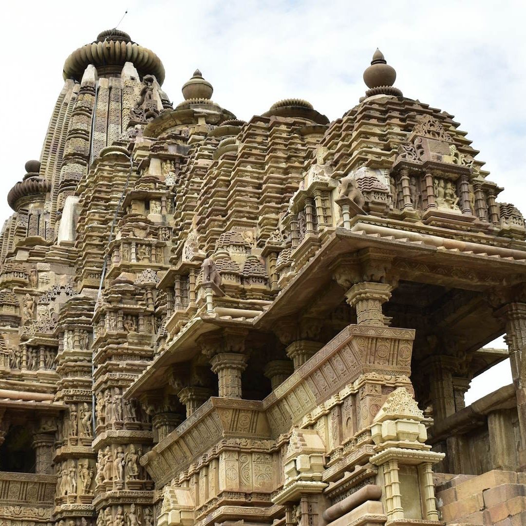 Os templos de Khajuraho são um complexo monumental de templos hindus e jainistas localizados em Madhya Pradesh, na Índia, famosos por sua arquitetura no estilo Nagara e esculturas intrincadas, muitas vezes eróticas. Declarados Patrimônio Mundial da UNESCO em 1986, foram construídos pela dinastia Chandela entre 950 e 1050 d.C.Originalmente, havia cerca de 80 templos, dos quais aproximadamente 22 permanecem hoje, distribuídos em três grupos principais: ocidental, oriental e meridional. As esculturas refletem os quatro objetivos da vida no hinduísmo: dharma, kama, artha e moksha, e retratam a vida cotidiana, divindades, músicos e figuras eróticas com grande detalhe artístico. Toda a área onde os templos foram construídos é murada, com oito portões que permitem a entrada no recinto.